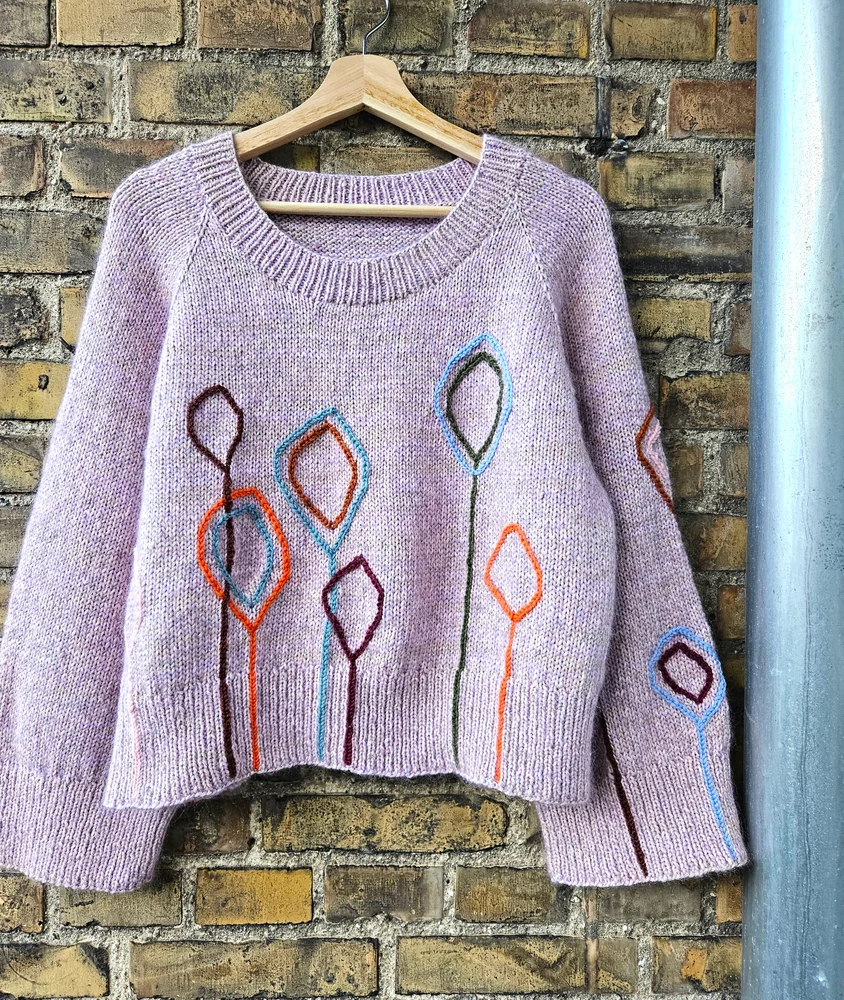 Til dekoration på strik: En bluse/sweater/hue eller andet ensfarvet som der skal dekoreres på og en