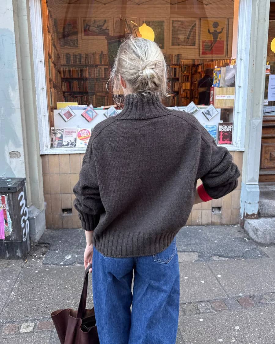 Den brune Hannah Sweater O-neck er strikket i Atlas fra Sandnes Garn i farven Coffee melange [2381].